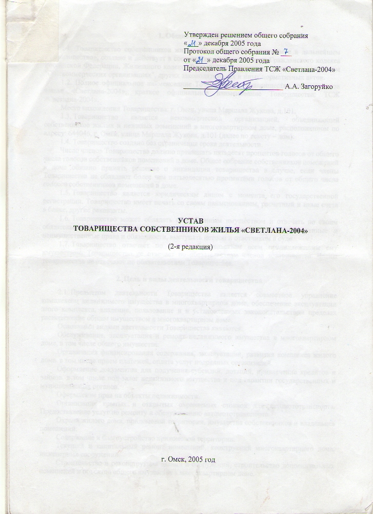 о проведении общего собрания членов ТСЖ « Светлана-2004» в многоквартирном доме.